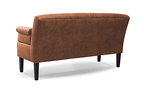 CAVADORE 3-Sitzer Küchensofa Malm, Sitzbank für Küche oder Esszimmer in Lederoptik, Inkl. Armteilverstellung, Federkern und moderner Kontrastnaht, 182 x 97 x 78, Mikrofaser: cognac