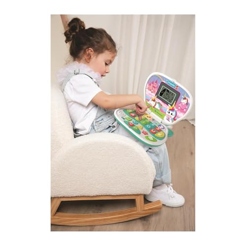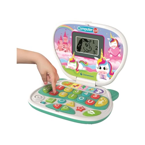 Clementoni – Computer für Kinder, Einhorn, Lern-Laptop für Kinder ab 2 Jahren, 10 Aktivitäten, elektronisches Spiel zum Lernen von Buchstaben, Zahlen, Formen, Farben und Richtungen, Batterien im