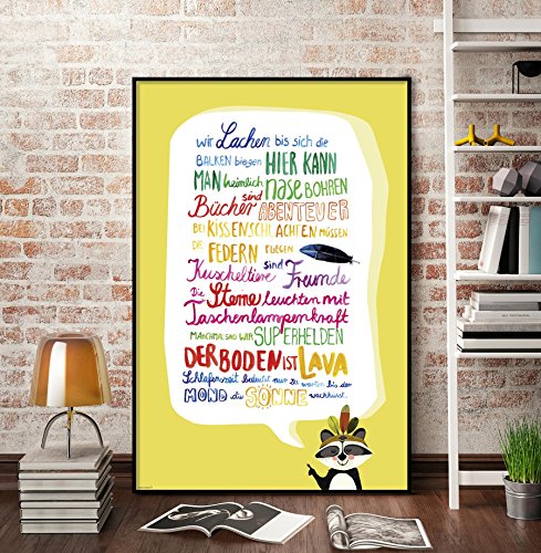 • LIEBENSWERT – Jedes Kind braucht Regeln! Darum präsentiert Close Up hier den Waschbären, der die wichtigsten Kinderzimmer-Regeln zusammenfasst. Unsere Künstlerin & Graphikerin Janette hat es wieder einmal geschafft, Sonne an die Wand zu bringen.