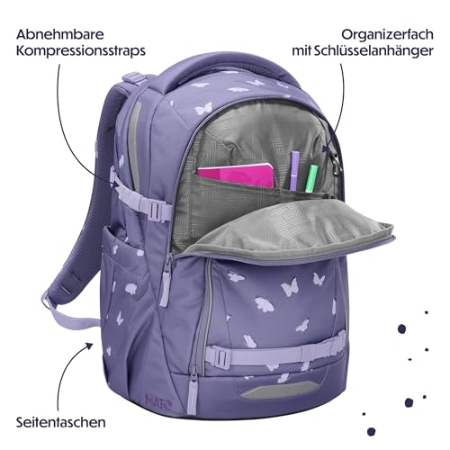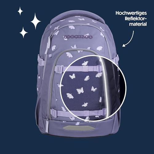 coocazoo Mate Schulrucksack „Reflective Wings”, lila, reflektierend, ergonomischer & anpassbarer Tornister, höhen- & größenverstellbar, mit Brustgurt & Hüftgurt, ab der 3. Klasse