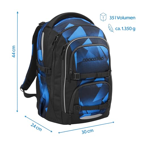 Coocazoo PORTER Schulrucksack „Electric Ice”, schwarz-blau, ergonomischer & anpassbarer Tornister, höhen- & größenverstellbar, mit Brustgurt & Hüftgurt, ab der 3. Klasse