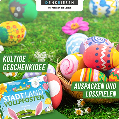 DENKRIESEN – Stadt Land VOLLPFOSTEN® – Oster Edition – 'Volle Möhre.' – DIN A4 Spielblock | ab 9 Jahren | 50 Blatt | Familienspiel | Ostergeschenk für Kinder & Erwachsene | Spaß vorprogrammiert