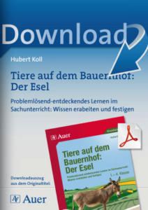 Tiere auf dem Bauernhof im SachunterrichtDie Tiere auf dem Bauernhof sind ein spannendes Thema für den Sachunterricht in der Grundschule. Dieser Download beschäftigt sich mit dem aktiv-entdeckenden Lernen rund um den Esel. Wie sieht ein Esel aus? Gibt es Esel in verschiedenen Farben? Was macht den Esel als Arbeitstier aus? Durch abwechslungsreiche Aufgaben gelingen Ihnen spannende Stunden im Sachunterricht. Entdecken und forschen rund um den EselSie erhalten mit diesem Download nicht nur eine Vielzahl an Arbeitsblättern und Kopiervorlagen, mit denen Sie Ihre Schüler zum aktiv-entdeckenden Lernen anleiten. Sie finden im Download auch Tipps und Anregungen für eine Unterrichtseinheit zum Thema Esel.Spannendes über den EselDie anregenden Aufgaben machen den Kindern Spaß und animieren Sie zusätzlich zu eigenständigen Recherchen. Die Arbeitsmaterialien des Downloads sind optimal auf die Arbeit mit ?Meine große Tierbibliothek? aus dem Esslinger Verlag abgestimmt.Die Themen im Überblick:Was weißt du über den Esel? | Wie sieht ein Esel aus? | Sind alle Esel grau? | Wie kam der Esel zum Menschen? | Der Esel als Arbeitstier | Ein Esel als Geburtstagsgeschenk? | Alles Esel oder was? | Wie verhält sich ein Esel? | Eins, zwei drei ? kleine Eselei! | Berühmte Esel? | Esel-Domino