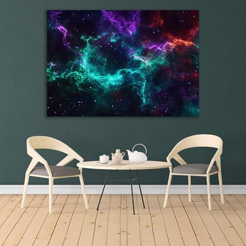 DunPei Raumfahrer Motiv Kinderzimmer Wandbilder Colorful Nebula Planeten Poster-Tiefeneffekt Pädagogisches Lernposter(Grün)-80x120cm Gerahmt
