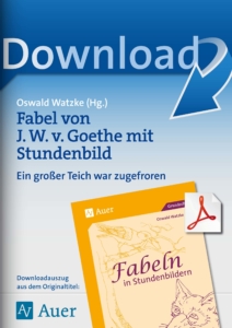 Der Text „Ein großer Teich war zugefroren“ wird Ihnen hier als Download für Ihre Unterrichtsvorbereitung angeboten. Diese Kurzfabel in Gedichtform eignet sich hervorragend dafür, um Ihre Schüler für den Umgang mit Gedichten zu sensibilisieren. Dies können Sie dank der für Sie bereits ausgearbeiteten Unterrichtseinheit mit Stundenbild, Tafelbildern und Lernzielkontrollen mühelos umsetzen. Gestalten Sie so auch interessante und abwechslungsreiche Vertretungsstunden. Weitere Fabeltexte als Download gibt es auf der Webseite, u.a.:Fabeln von Äsop in StundenbildernFabeln von La Fontaine in StundenbildernFabeln in Stundenbildern – VersfabelnFabeln in Stundenbildern – ComicfabelnFabeln in Stundenbildern – Epische LiedfabelnFabeln in Stundenbildern – Epische VersfabelnFabeln in Stundenbildern – Zum Thema HochmutDie beiden Ziegen (Albert Ludwig Grimm)Der Bär und das Eichhorn (James Krüss)Herbstwind und Sonne (Jean de la Fontaine)Der Rabe und der Fuchs (Martin Luther) Fabeln aus dem Tschechischen mit StundenbildFabeln mit Stundenbild – Der Derwisch und der WolfInhaltliche SchwerpunkteStundenentwürfeErarbeitungFreiarbeitVertretungsstunden