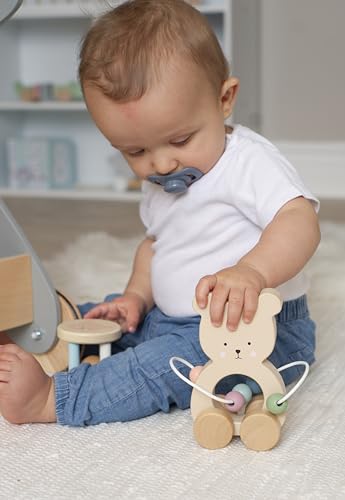 Schiebe-Spielzeug in Form eines Teddys aus Holz mit Abakus
