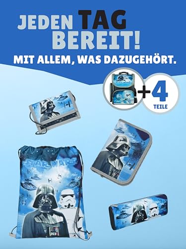 Familando – Schulranzen Set CLOU – 5-teilig mit Federmappe – Star Wars Classic – Ergonomisch, stabil & mit gepolstertem Rücken – 930g leicht – 15L Volumen – Mit Reflektoren – ab 1. Klasse