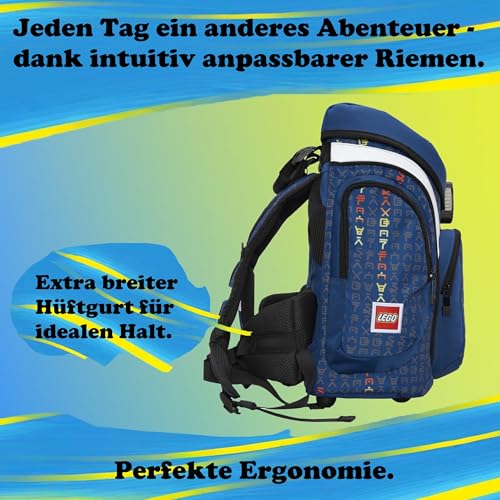Familando – Schulranzen Set 6-teilig mit Federmappe – Ninjago Blau – Ergonomisch, stabil & mit gepolstertem Rücken – 1250g leicht mit 16L Volumen – wasserabweisend und mit Reflektoren – Ab 1. Klasse