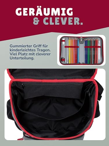 Familando – Scooli Campus Fit Schulranzen Set – 10-teilig mit Schultüte – 1. FC Nürnberg (1. FCN) – Ergonomisch, stabil & 980g leicht – 18L Volumen – Brustgurt & Reflektoren – ab 1. Klasse