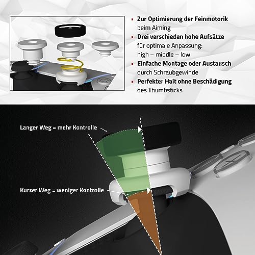 • 🎯 OPTIMIERTE PRÄZISION: Die RAISX Thumbstick-Aufsätze bieten dir eine beeindruckende Steigerung deiner Zielgenauigkeit. Mit einer bis zu 50% längeren Bewegungsreichweite deiner Thumbsticks hast du die volle Kontrolle über dein Zielen und kannst jeden Schuss punktgenau platzieren.