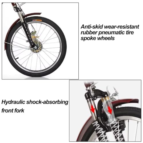 • 【Fahrrad mit 3 Rädern】 Der Rahmen aus Kohlenstoffstahl kann eine maximale Last von 150 kg tragen; der Rahmen mit niedriger Spannweite eignet sich zum Auf- und Absteigen vom Dreirad. Luftbereifte, rutschfeste Speichennabenräder, geeignet zum Fahren auf verschiedenen Straßenoberflächen.