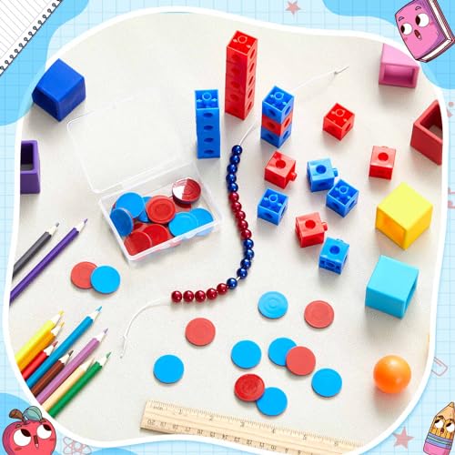 Geosar Mathematik Set Rechenkette Rot/Blau 20 Zählkette mit Zweifarbigen Kugeln 30 Zählchips 20 Mathe Würfel Rechen Set