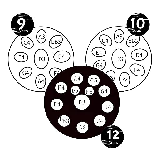 • 【9/10/12 Notizen Design】Diese Handpan in d-Moll verfügt über ein 9/10-Noten-Design für Anfänger. Sie enthält 10 Noten, darunter 1 Mittelnote und 9 Tonfelder: D3, A3, bB3, D4, F4, A4, C5, G4, E4, C4.