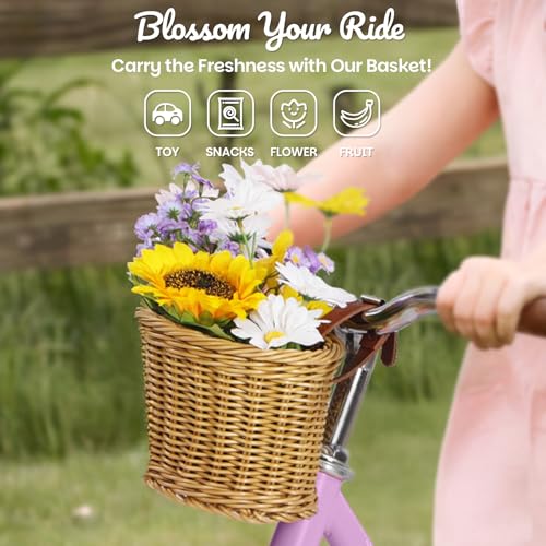 • 【Abnehmbarer Korb】Dieses 14-Zoll-Laufrad ist mit einem abnehmbaren Weidenkorb ausgestattet, der einen schnellen Zugriff auf aufbewahrte Gegenstände wie Spielzeug, Snacks, Blumen oder Obst ermöglicht. Es ist perfekt für Jungen und Mädchen, um die Frische und Freude jeder Fahrt zu tragen.