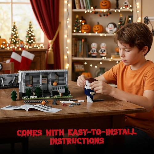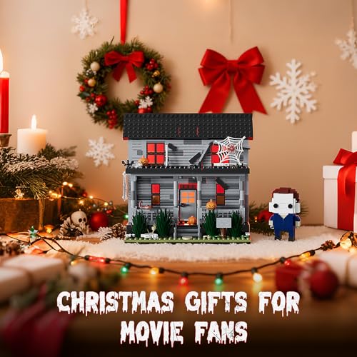 Horrorfilm-Figur & Spukhaus-Bausteine-Kits mit LED-Licht für Halloween-Dekoration, kompatibel mit Lego, Sammlerstück, Dekoration, Bauspielzeug, kreatives Geschenk für Fans, Erwachsene