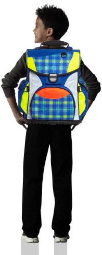 Idena 250043 – Schulranzenset, Ranzen, Schüleretui, Sportbeutel, Faulenzer, Geldbörse, kariert, 5-teilig, blau