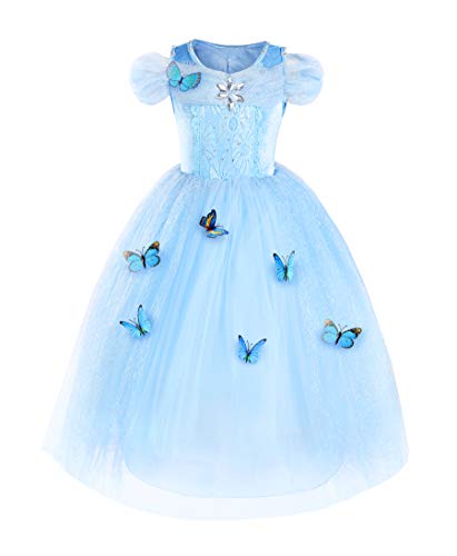 JerrisApparel Cinderella-Kleid, Prinzessinnenkostüm, Himmelblau mit Zubehör, 150 cm