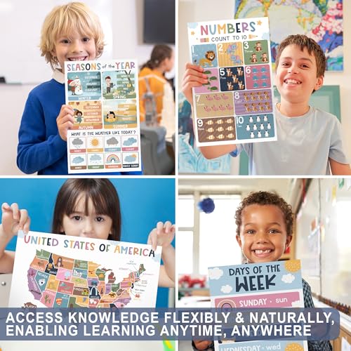 • Hilft Kindern, früh sprechen und lesen zu lernen: Dieses Set aus 16 ansprechenden Lernpostern hilft kleinen Kindern, schnell wichtige Fähigkeiten wie Sprechen, Lesen und mehr zu erwerben. Zu den Themen gehören ABC, Wochentage, Monate des Jahres, Zahlen, Zählen, Formen, Farben, Beruhigungstechniken, Klassenzimmer-Regeln usw.