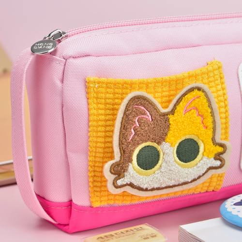 Lanxivi Federmäppchen mit großem Fassungsvermögen, bezauberndes Katzen-Federmäppchen, Schreibwaren, Stiftetasche für Teenager, Mädchen und Jungen, mit magischem Aufkleber und Deko-Abzeichen, Rosa