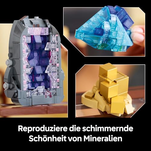 LEGO Ideas Mineraliensammlung – Set für Erwachsene – Modellbau mit Kristallelementen inkl. Amethyst, Fluorit & Tangerinquarz sowie 3 Ständern – DIY Wohn Deko Geschenkidee – 21362