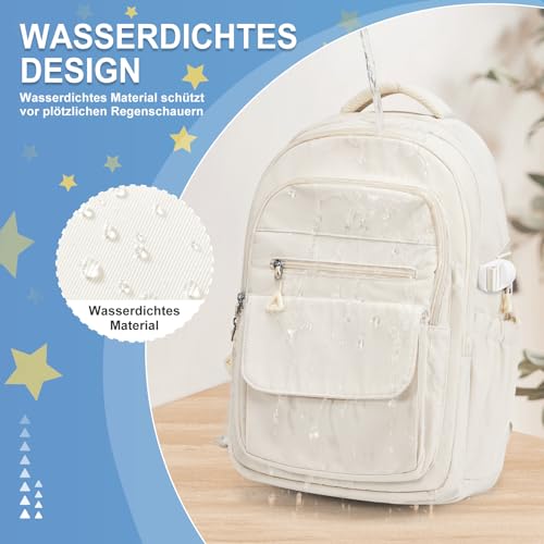Lendolk Schulrucksack Groß Teenager Mädchen Jungen, Uni Rucksack Beige Herren Damen mit Laptopfach, Wasserfester Schul Rucksack mit vielen fächern, Schultaschen