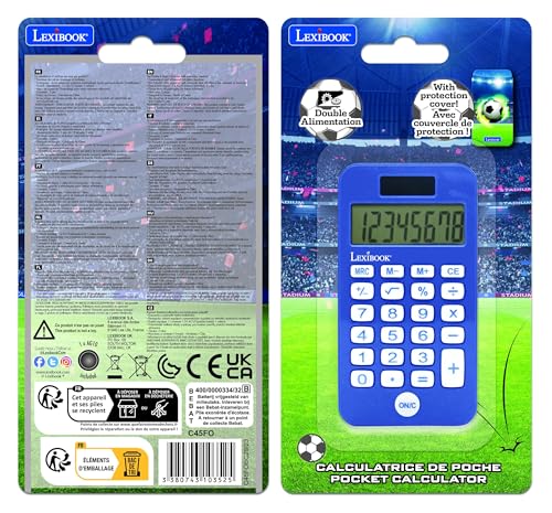 Lexibook, Fußball-Taschenrechner mit Schutzhülle, konventionelle und erweiterte Rechnerfunktionen, Batterie- und solarbetrieben, blau, C45FOLXB