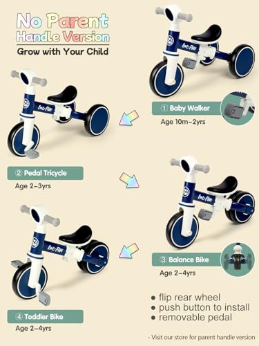 • LOL-FUN Laufrad Dreirad ab 1 Jahr, 4 in 1 Kinderdreirad mit abnehmbare Pedale, Laufräder Lauffahrrad für Kinder ab 1 Jahre bis 3 Jahre Jungen Mädchen
