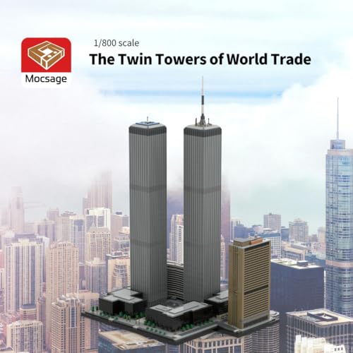 MetaHrystynx Architecture World Trade Center Building Blocks, 1:800 Maßstab Wahrzeichen Architektur Zwillingstürme Straßenszene DIY-Bausatz Bausteine (7129PCS)