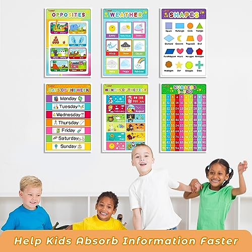 - NymphFable 6 Stück Pädagogische Poster für Kleinkinder, Pre-K-Lernposter für Kleinkinder von 3-5, Alphabet Poster Kindergarten Homeschool Kindergarten Klassenzimmer Zubehör Dekor – Laminiert