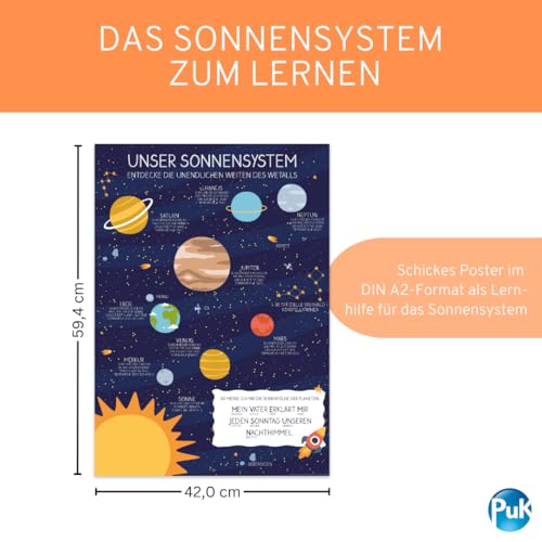• 😊 POSTER IM XL-FORMAT NACHHALTIG VERPACKT: Durch das große DIN A2 Format – 59,4 x 42,0cm – können kleine Weltraumbegeisterte die Planeten super lernen. Das Poster wird gerollt in einer plastikfreien Verpackung zu euch geliefert.