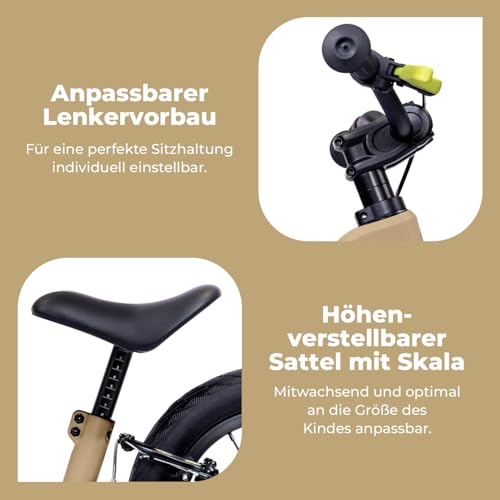 PUKY Next 12" Sand/Black | Höhenverstellbares Laufrad 2–6 Jahre | Kinderlaufrad ab 2 Jahren | Lauflernrad mit Bremse & Sicherheitslenkergriffen | Balance Bike | FlipChip-Technologie bis 14-Zoll Räder