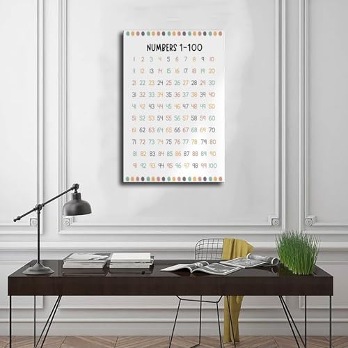 QIENAZIO Kunstdruck auf Leinwand, Zahlen 1-100, druckbar, Zahlen 1–100, pädagogische Leinwand, Wandkunst, Poster und Drucke, ästhetische Dekoration für Schlafzimmer, Büro, 60 x 90 cm