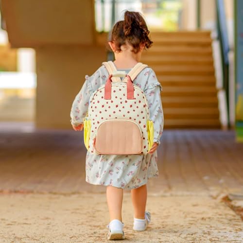 • Niedlicher Mini-Rucksack: Der Kindergartenrucksack für Mädchen mit rosa Erdbeerdruck ist perfekt für Mädchen im Alter von 2 bis 5 Jahren. Die Tasche verfügt über leicht zu öffnende und zu schließende Reißverschlüsse, eine Haupttasche mit Reißverschluss und eine Fronttasche. Gepolsterte Schultergurte und gepolsterter Rücken, ideal für die Bedürfnisse des Kinderrucksacks.