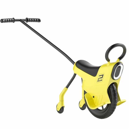 SAYEYBU Kinder Hand Betriebenes Einrad Gleichgewicht Fahrrad, Leichtes Einrad mit Lichtern, Handläufen & Hilfsrädern, Eltern Kind Bodenrad für Kleinkinder,Gelb