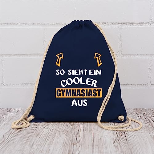Shirtracer Turnbeutel Rucksack – Schulanfang & Einschulung Geschenk – So sieht ein cooler Gymnasiast aus weiß/orange – Unisize – Navy Blau einschulung-schulanfang schulanfänger gymnasium