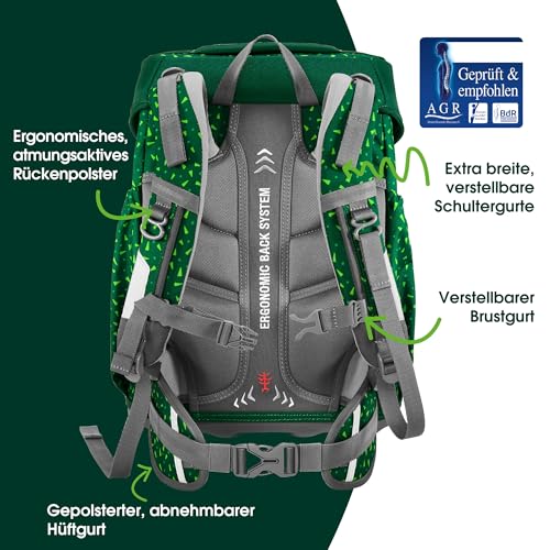 Step by Step Basis Schulranzen-Set „Green Graphics“, 4-teilig, grün, ergonomischer Tornister mit Reflektoren, Hüft- und Brustgurt, für Kinder ab der 1. Klasse, 20 Liter