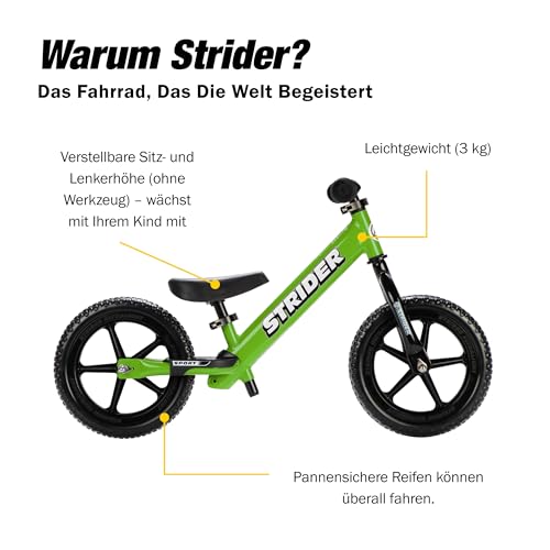 • Strider 12 Sport Kinder Laufrad 12 Zoll, Lauffahrrad ab 18 Monate bis 5 Jahre, Balance Bike in Grün?