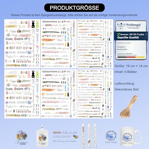 Sugeru 6 PCS Kerzentattoos Ostern (200+ Muster),Kerzenfolie | Wasserschiebefolie Kerzen Tattoo | Easter, Oster, Ostern Geschenke Aufkleber Sticker | Osterns Dekoration | Osterns Kerzen, Deko (Ⅰ)