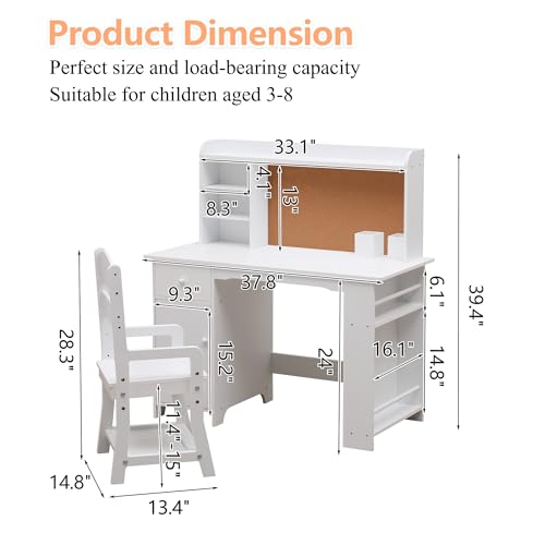Thaookte Kinderschreibtisch Set, Schreibtisch Kinder Mit Stuhl Aus Holz, Schülerschreibtisch Mit Bücherregal, Schrank, Schublade & Pinnwand, Jugendschreibtisch Für Kinder Ab 3 Jahren, Weiß