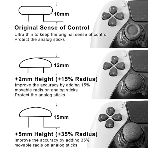 • Bessere Kontrolle: Die Kappenabdeckung des Daumensticks bietet 3 verschiedene Höhenstufen für eine verbesserte Höhenkombination, was eine schnellere Zielerfassung und eine verbesserte Simulationsgenauigkeit auf der rechten Seite und eine bessere Kontrolle auf der linken Seite für sanftere Bewegungen ermöglicht.