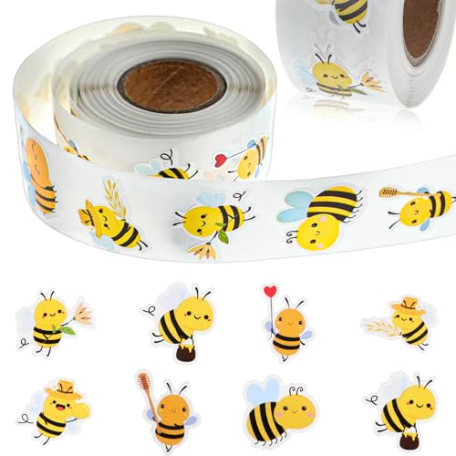 Visxcnu 500St Runde Punktaufkleber, Dekoration 2,5cm Glitzer Aufkleber Rollen...500 Stück Bienen Aufkleber Kinder,Cartoon Biene Stickers Kinder,Tier Belohnungsaufkleber...