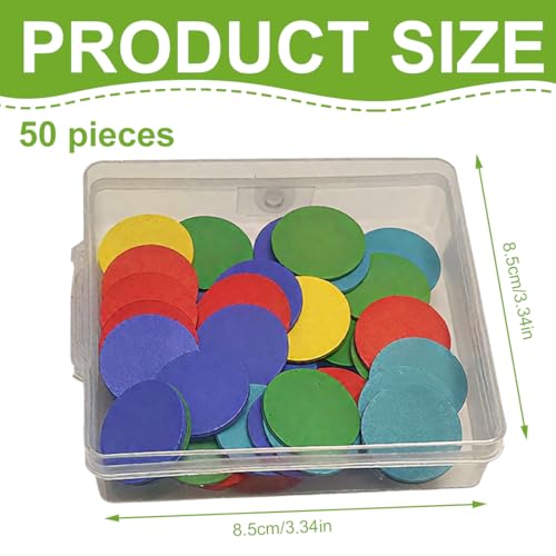 • 50 farbige Holzscheiben in 5 Farben zum Zählen und Lernen Enthält 10 Holzchips pro Farbe: Rot, Gelb, Grün, Blau, Lila. Ideal zum Zählen, Sortieren, Klassifizieren und für mathematische Lernspiele im Unterricht oder Zuhause.