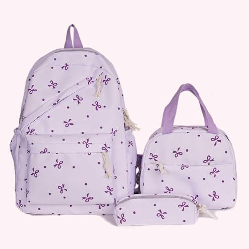 zeryor Entzückende Schleife Schüler Schultasche Dreiteiliges Set beinhaltet: College-Style Rucksack, Lunchtasche, Federmäppchen – Leichtes Nylon Schulranzen-Set für Mädchen, Jungen, Teenager, Frauen